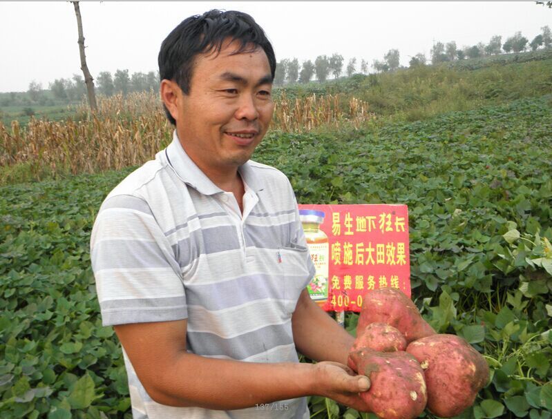 3月2日至6日,記者驅(qū)車數(shù)千里,在大蒜主產(chǎn)區(qū)山東金鄉(xiāng)、河南杞縣、中牟,花生主產(chǎn)區(qū)河南開封、正陽、內(nèi)黃、延津、民權(quán)等地采訪,所到之處,農(nóng)技部門極力推薦,農(nóng)民無不夸獎,易生科技“植物細胞裂變技術(shù)”之核心產(chǎn)品--“植物DNA激活酶”,被各地農(nóng)民稱贊為“地下狂長”、“地下狂銀”、“地下狂增”、“地下狂金”的地下四狂,被譽為易生科技地下四寶。短短三年的時間,已被廣泛應(yīng)用于地下塊莖、球莖、鱗莖等作物達千萬畝次,通過葉面噴施2-3遍均能達到抗病、抗旱、抗凍、改善品質(zhì)、增加產(chǎn)量20—30%以上,個別作物可增產(chǎn)30—50%。記者在采訪中聽到一位農(nóng)技人員隨口說出的一句順口溜:地下狂長噴三遍,一畝能收一畝半。是農(nóng)民對易生科技“植物細胞裂變技術(shù)”之核心產(chǎn)品--“植物DNA激活酶”神奇增產(chǎn)效果的總結(jié)和真實感言。農(nóng)民高興的對記者說:“植物DNA激活酶”是當(dāng)代農(nóng)民打開農(nóng)業(yè)地下經(jīng)濟黃金寶庫的金鑰匙,是引爆農(nóng)業(yè)根莖作物產(chǎn)量倍增的原子彈。